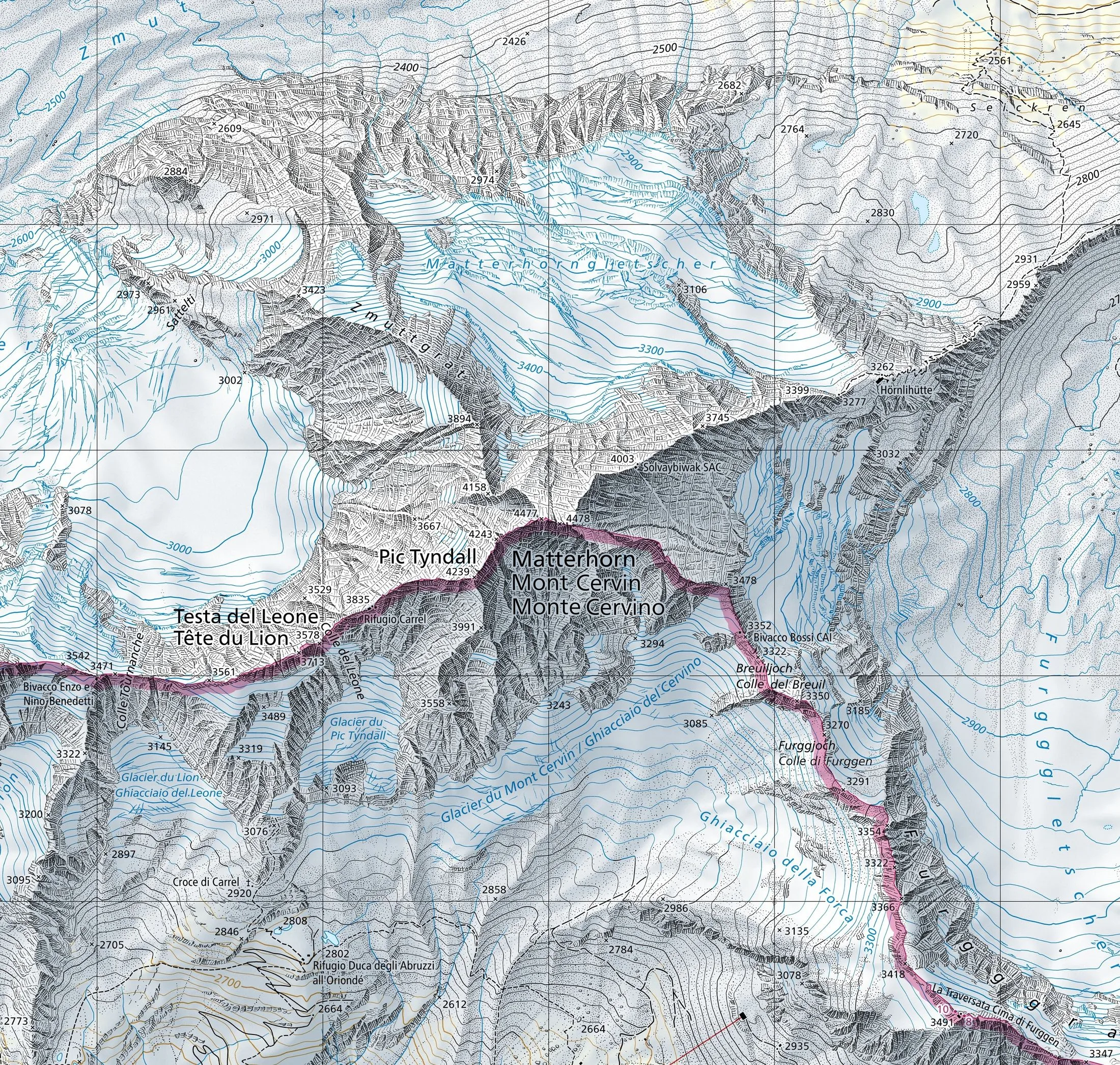 Alpine Zeichnungen, Höhenlinien und 3D‑Studien rund um das Matterhorn.
